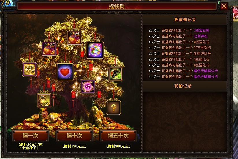 【活动内容】:活动时间内,摇动摇钱树可获得大量珍贵材料与物品